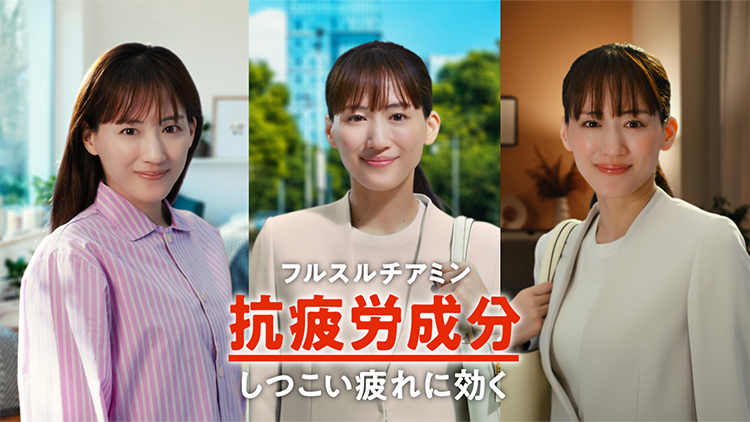 抗疲労成分「フルスルチアミン」配合のパチスロ 万 枚Aで元気になった綾瀬さん。