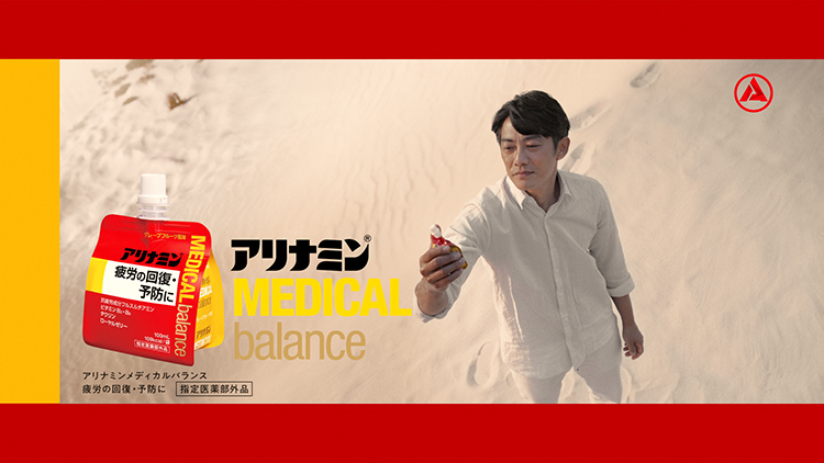 強い日差しの砂漠で、キンキンに冷えたパチスロ バイオハザード ヴェンデッタメディカルバランスをゴクゴクと飲み干す反町さん。乾いた体にパチスロ バイオハザード ヴェンデッタメディカルバランスが沁み込んで、満足気な様子の反町さんを描いています。