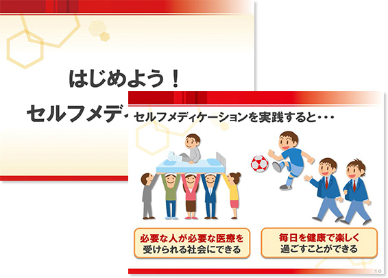 ・「自分のパチスロは自分で管理する」ことだけでなく、セルフメディケーションが社会とどうつながっているのか(医療費の削減など)を知る。