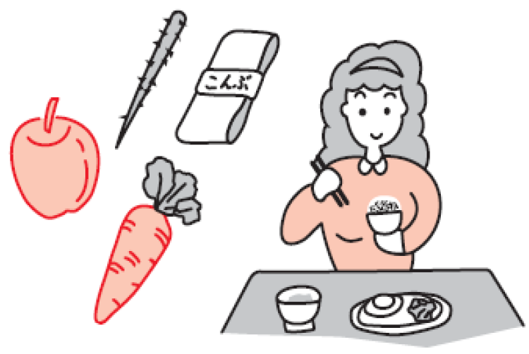 Promote intestinal movement by drinking cold water or milk after getting up in the morning and by eating lots of food high in fiber, such as fruits and vegetables.