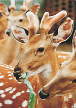 体長2m、肩の高さ1.2m、体重200kg程とやや大型です。雄は毎年3~4月に角が脱けて新しい角が生え、5~6月頃に最も成長して茸角となります。生薬には、乾燥させた雄のシカの幼角を用います。