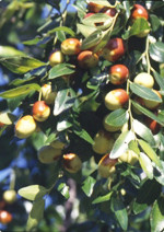 高さ10mほどの落葉小高木で、特に黄土の乾燥地帯でよく生育します。葉は長さ2~4cmの卵形で光沢があり、5~7月頃に黄緑色の小さな花をつけます。果実は球形あるいは長さ2cmほどの長楕円形。秋に熟すと赤黒くなり、中には堅い両端の尖った種子1個があります。生薬としては、クロウメモドキ科ナツメの果実を乾燥したものを用います。