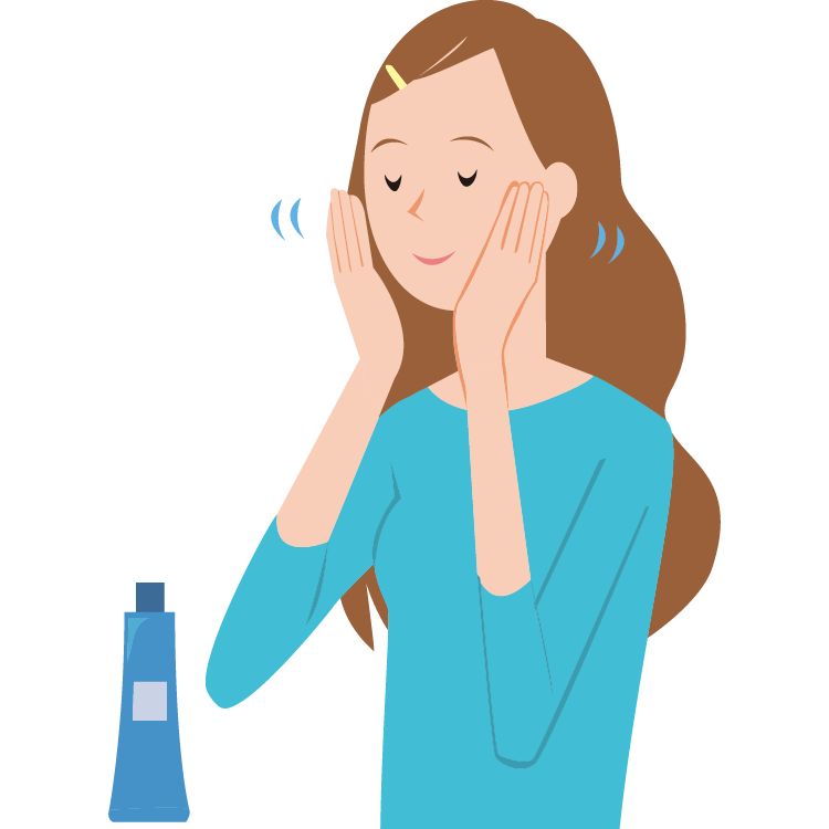 化粧水で水分を補給したのち、乳液やクリームで保湿します。また、顔全体を指の腹で軽くたたくタッピングを毎日続けて、老化を防ぐようにしましょう。化粧品は、紫外線をカットする効果のあるものを使うようにしてください。
