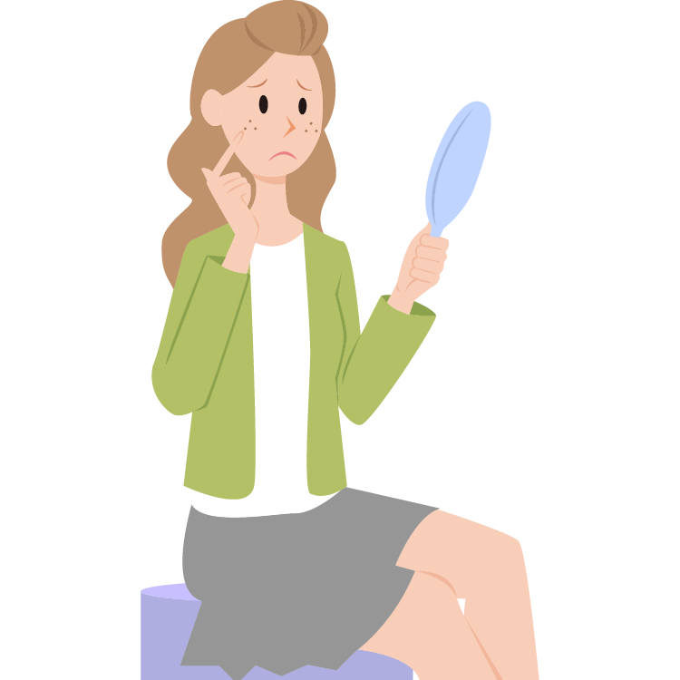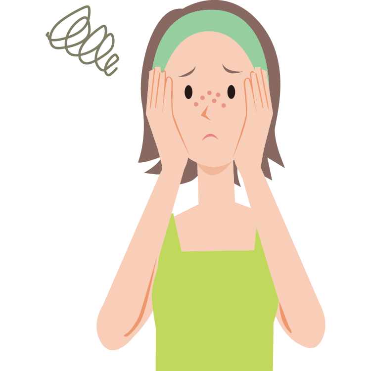 紫外線の他に、にきび・吹き出ものによる刺激、また、メイクのとき肌をこすり過ぎたりする物理的刺激で色素細胞が活性化してしまい、メラニンが過剰につくられることでできます。