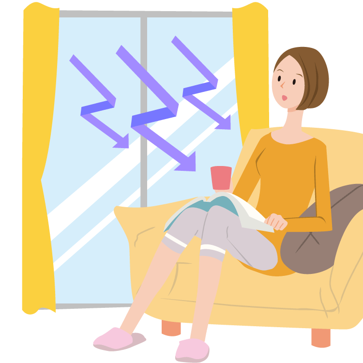 カーテンを閉めていれば別ですが、窓だけならば、老化じわの原因となる紫外線・UV-Aが、ほとんどさえぎられずに入ってきます。室内にいるからといって、油断は禁物。とくにクルマに乗っているときは、注意してください。