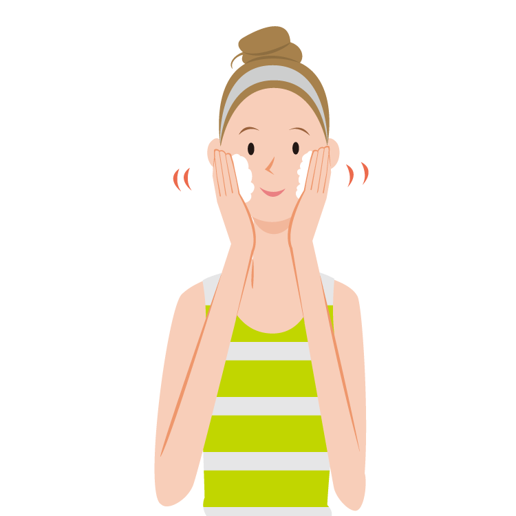 1日中、外にさらされた肌はとても汚れています。余分な皮脂、古い角質、化粧品やホコリなど、毛穴にたまった1日の汚れをしっかり取り除くことが、肌の新陳代謝やにきび・吹き出ものの予防には欠かせません。クレンジング剤でメイクを落とし、その後、洗顔料を使ってぬるめのお湯でていねいに汚れを洗い流しましょう。