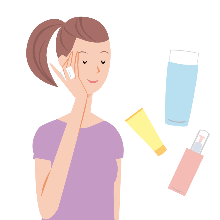 肌のうるおいを保つためには、水分や油分を補給することが大切です。洗顔後は化粧水で水分を補給し、口元や目元など皮脂が足りない部分には、乳液やクリームを補うようにしましょう。