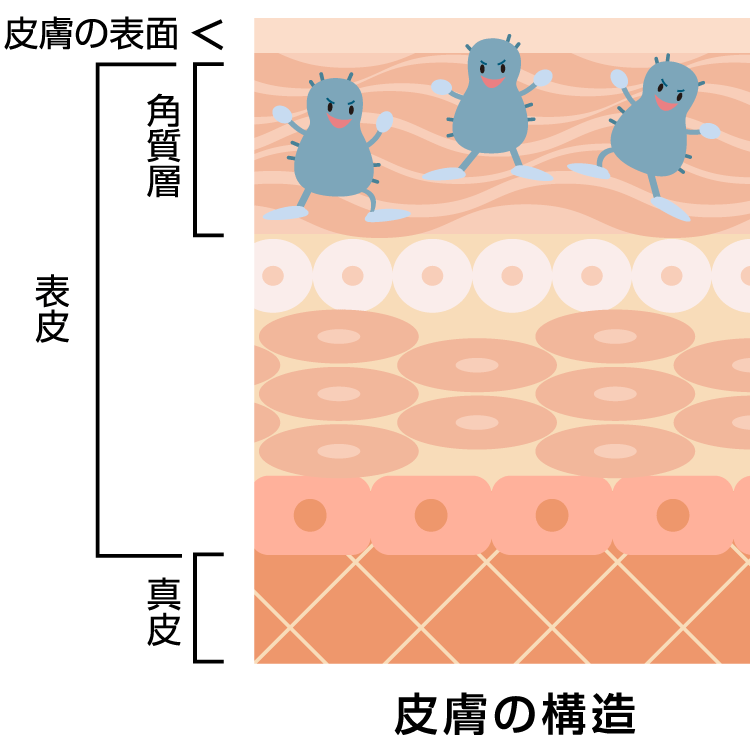 ちょうど植物が土に根を下ろすように、カビ特有の「菌糸(きんし)」を伸ばして入り込みます。皮膚の表面に付着して、12時間後くらいから徐々に侵入し始めるという報告があります。