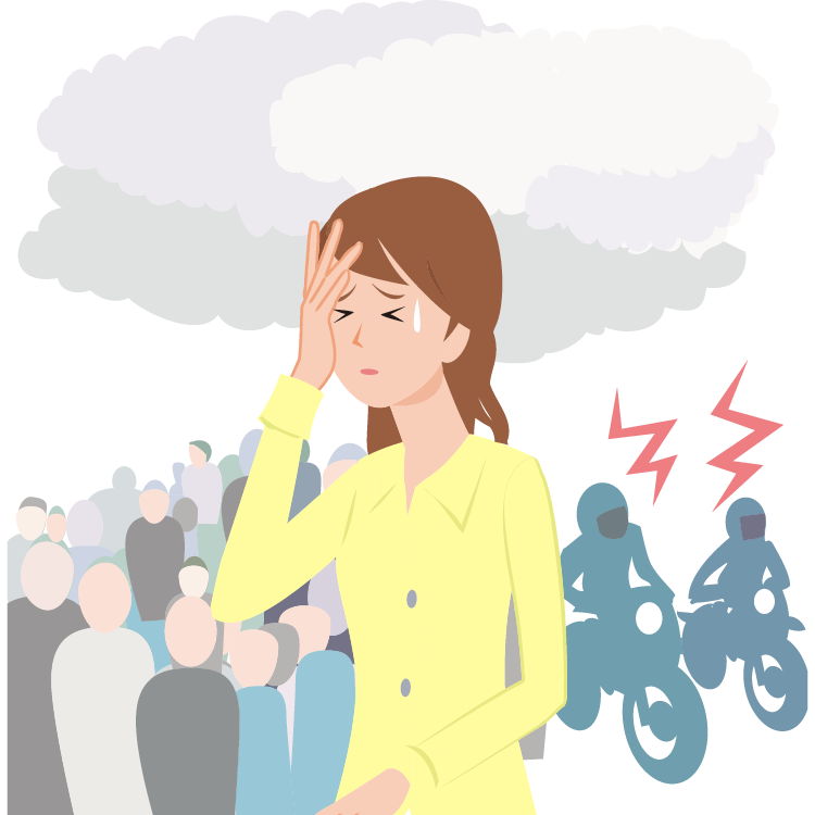 片頭痛がある人は、頭痛の前触れとして不快な天気、人ごみ、騒音、まぶしい光などに過敏になることがあります。