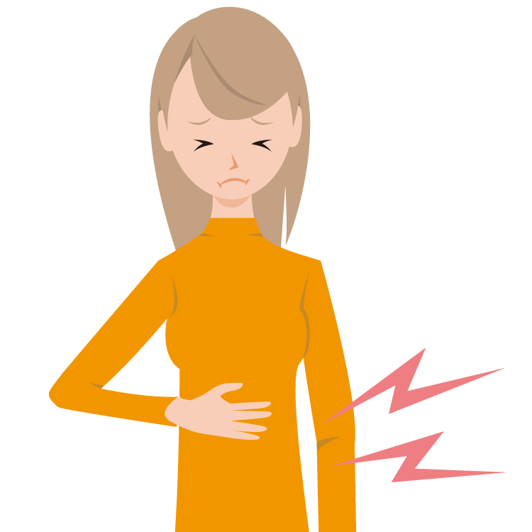 ピロリ菌や強いストレス、非ステロイド性消炎鎮痛剤などが胃粘膜に傷をつけ、さらに消化作用を持つ胃酸・消化酵素が胃粘膜や胃壁を溶かすことにより起こります。特徴的な症状は、みぞおち周辺のズキズキとした重苦しい痛みです。胃潰瘍は胃に入った食べ物が潰瘍を刺激して痛むので、食事中から食後の痛みが多くなります。人によってはあまり痛みを感じないこともある他、胸やけや吐き気をともなうこともあります。
