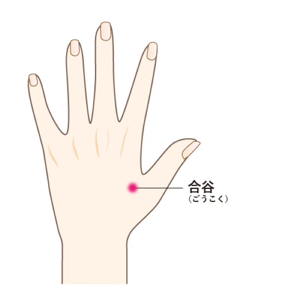 手の親指の骨と人さし指の骨が分かれたあたりの「合谷(ごうこく)」、