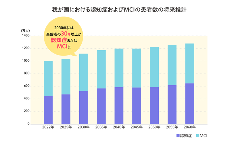 出典:二宮利治「認知症及び軽度認知障害の有病率調査並びに将来推計に関する研究」内閣府「令和6年版高齢社会白書」 より作成