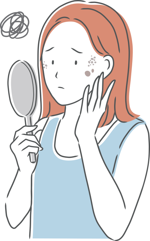 主に遺伝的な要因で幼少期(3~6歳頃)から現れ、思春期に濃くなる傾向があります。 紫外線を浴びると悪化し、季節によって濃さが変わることもあります。 |