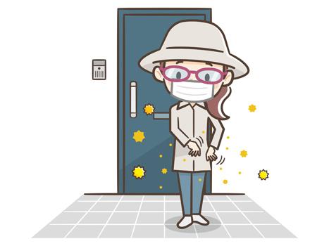 帰宅時は衣服をよくはたいてから室内に入ります。そして、うがいと洗顔を忘れずに行ってください。