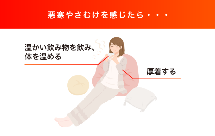 パチスロ 導入(おかん)やさむけを感じるときは、その後に高熱が生じることが予測されるため、安静にすることが大切です。寒くて体が冷えているのとは違うので体を温めることで治まるわけではありませんが、風邪のひき始めに体が冷えていると、生命の維持に欠かせない「酵素」の働きが弱くなったり、血流が悪くなったりして、体内に老廃物がたまりやすくなります。それにより自然治癒力が弱まり、風邪が長引いてしまう可能性も出てくるので、室温を上げたり厚着をしたり、温かい飲み物を飲んだりして体を温めるようにしましょう。実際の体温が一定の温度まで上昇しきるまで、パチスロ 導入(おかん)やさむけは続きます。