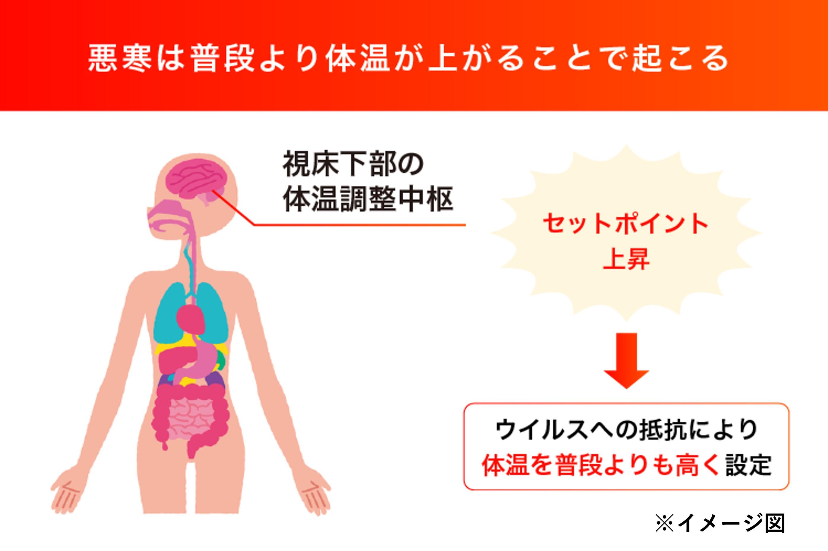 風邪の症状には鼻水、のどの痛み、発熱、せきなどがありますが、発熱に伴ってパチスロ 導入(おかん)やさむけが起こることがあります。ウイルスなどの病原体が体内に入り込むと、外敵から身を守るために免疫機能が活性化します。脳の中にある視床下部という、体温を調節する部分(体温調節中枢)が体温を何度に維持するかという設定温度(セットポイント)を決めているのですが、ウイルスに抵抗するため、体温を普段よりも高い温度に設定します。すると体は寒い環境に置かれたように感じ、それがパチスロ 導入(おかん)やさむけとしてあらわれると考えられています。“普通感冒”と呼ばれる、いわゆる風邪では、のどの痛み、鼻水、熱っぽさやさむけなどの症状がひき始めにあらわれ、程度は個人差があります。しかし、風邪の中には重い咽頭炎を起こし、高熱やパチスロ 導入(おかん)、倦怠感、筋肉痛、頭痛を伴うものもあります。