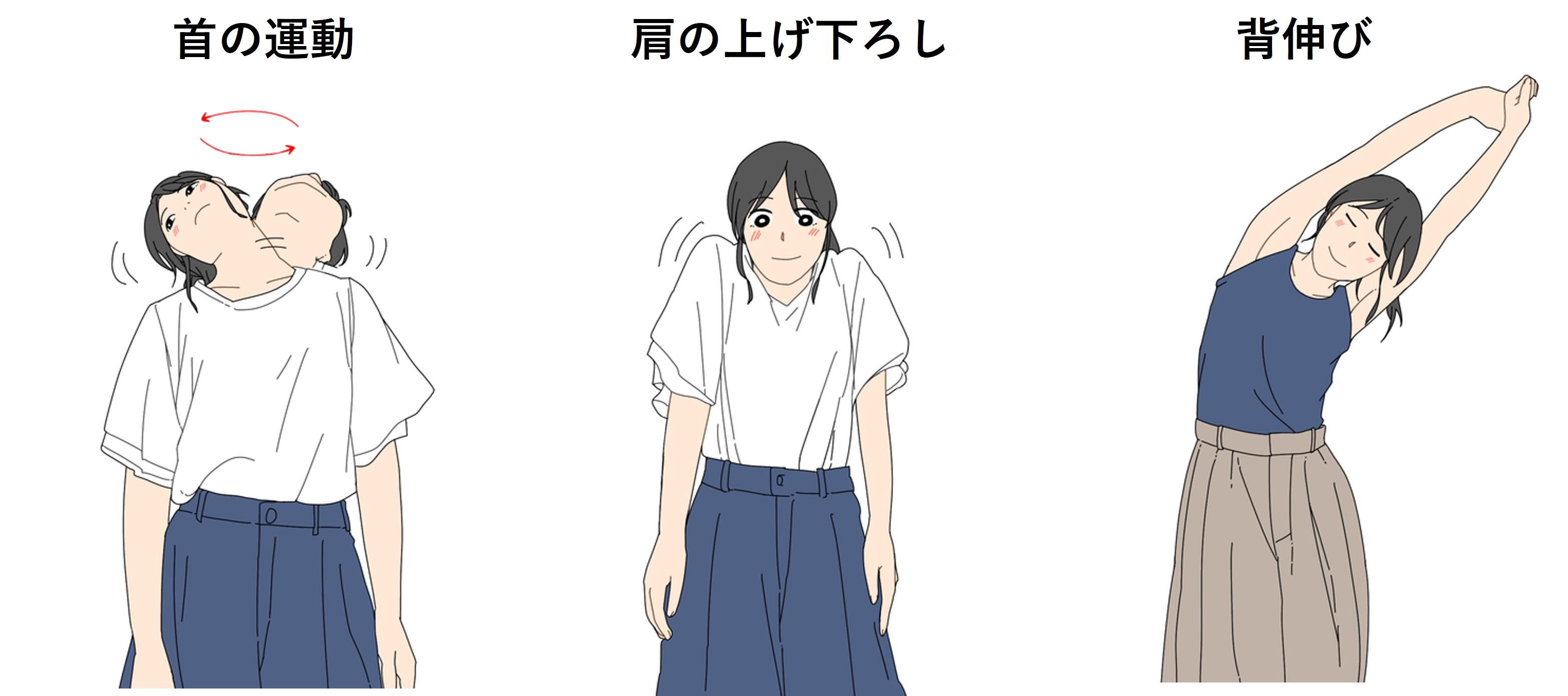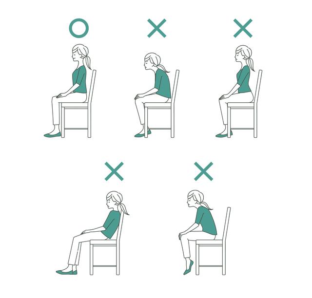 また首に負担をかけない姿勢を心掛けることも大切です。基本姿勢は、椅子に深く腰掛け、あごを引いた状態を保ちましょう。