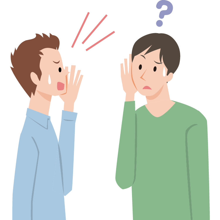 音を感じる器官である内耳の感覚細胞は、加齢とともに徐々に数が減っていきます。そのため、高齢になると聞こえにくくなるのが老人性難聴です。初期には高音域が聞こえにくくなり、しだいに中音域、低音域へと難聴の範囲が広がっていきます。キーンという高音の耳鳴りをともなうこともあり、これらの症状は通常両耳に起こります。