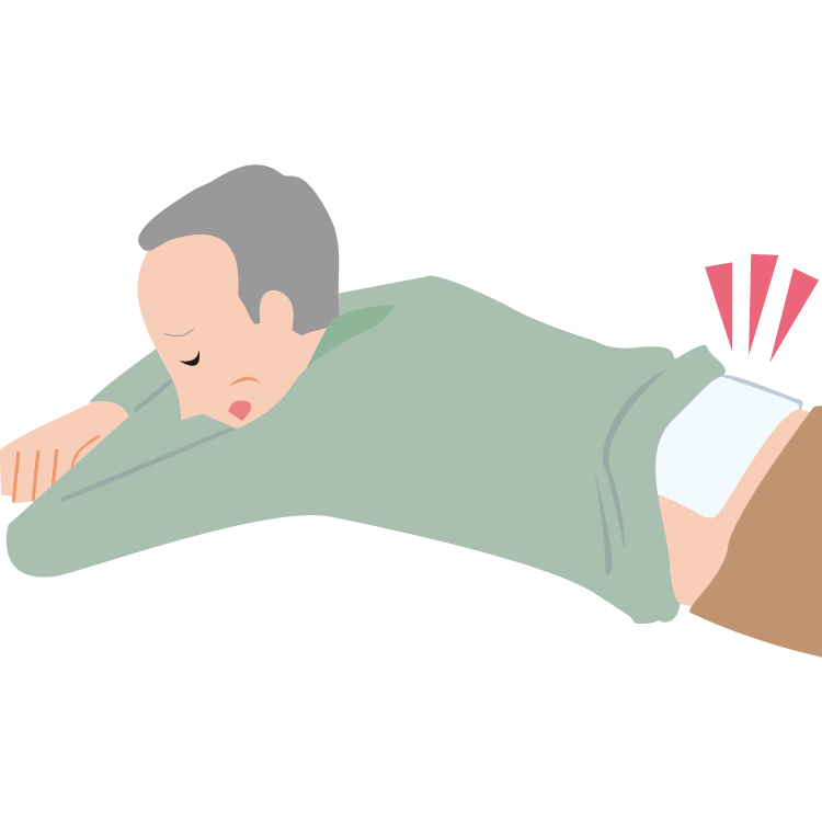 骨と骨をつなぐ椎間板に亀裂ができて、中の椎間板組織の一部が飛び出し、神経を圧迫することで起こります。腰やお尻の痛み、足指のしびれ、坐骨神経痛と呼ばれる片側の足の後ろ側の痛みやしびれが代表的な症状です。若い人にも比較的多く、痛みがあまりないこともあれば、激痛で動けなくなることもあります。
