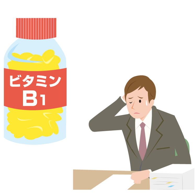 栄養素(主に糖質)をエネルギーに変える働きを持っています。また、筋肉や神経の疲れをやわらげる働きもあります。不足すると、エネルギーがつくられにくくなり、「疲れ」が生じ易くなってしまうので気を付けましょう。