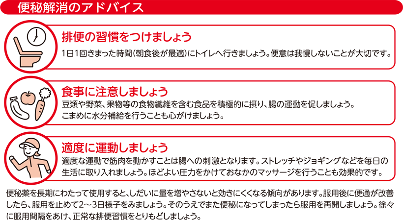錠剤には割線が入っているので、便通の具合をみながら、半錠ないし1錠ずつ増量(上記の最大量まで)または減量すること。