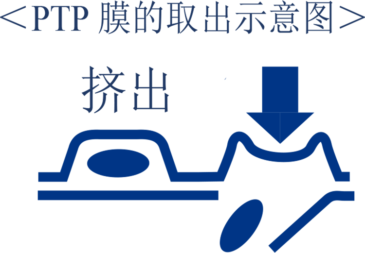 如右图所示,请用指尖用力按压装有片剂的PTP膜的泡罩,挤破背面的铝箔,取出宮城 県 パチスロ。(如误将其直接吞服,则可能会发生刺伤食道粘膜等意外事故)