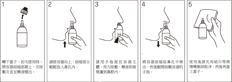 緩解急性鼻炎、過敏性鼻炎或者鼻竇炎引起的下列各症狀:鼻塞、流涕(鼻涕過多)、打噴嚏、頭重(頭沉重)