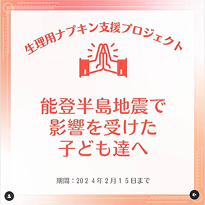 森2024年のお正月に能登半島地震が起こった際、親元を離れて避難所で暮らしている女子学生の方々が生理用ナプキンがなくて困ファン 感謝 デー パチスロいるという情報が、MeWプロジェクト※1を立ち上げられた大阪大学の杉田映理先生から届きました。 その時、私たちにできることはないか、ナプキン配布ができないか、ということで「寄付を集めます」「私たちが能登に生理用ナプキンを届けます」とInstagramに投稿しました。
