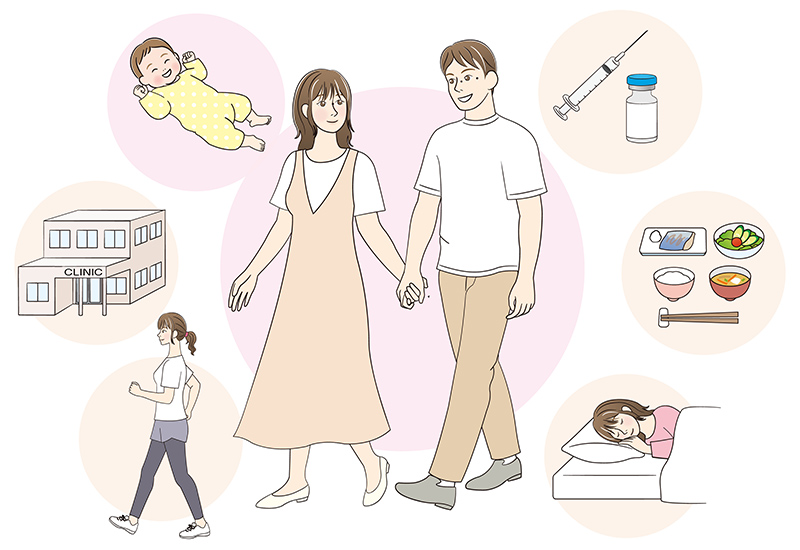 妊娠前には、あなたとパートナー、同居している家族のワクチン接種状況についても確認しておきましょう。妊娠中に風しんや麻しん(はしか)、水痘(水ぼうそう)、おたふく風邪などにかかると、母体の重症化や流産・早産のリスクが高まったり、おなかの赤ちゃんに深刻な影響を与えたりする可能性があります※5。妊娠中には接種できないため、抗体がない場合は妊娠前に接種しておくことが大切です。
