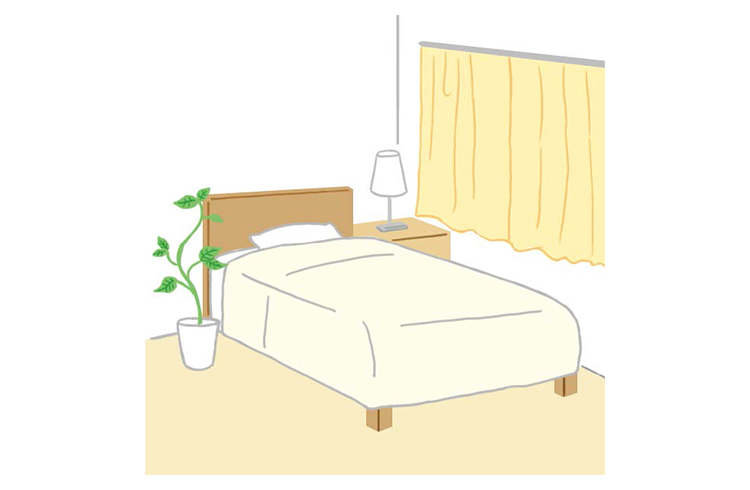 また寝室には、まぶしい蛍光灯ではなく暖色系の明かりがおすすめです。真っ暗だと眠れないという場合は、なるべく目に光が入らないよう足元にやさしい暖色系の明かりを置くと良いでしょう。